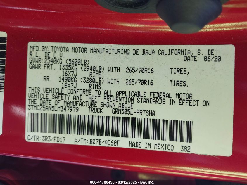2020 TOYOTA TACOMA 2020 Gasoline, 3.5, Full drive, VIN - 3TMCZ5AN5LM****** from the USA