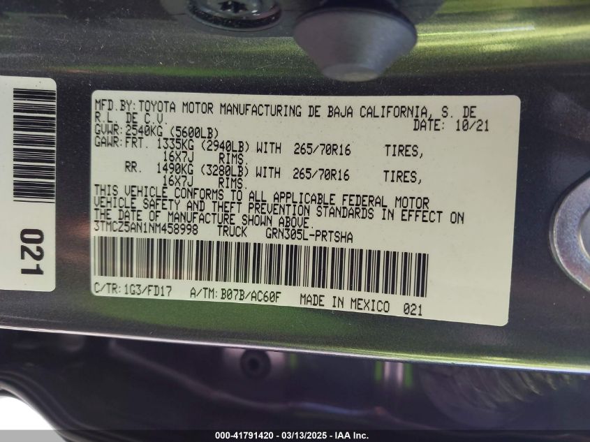 2022 TOYOTA TACOMA 2022 Gasoline, 3.5, Full drive, VIN - 3TMCZ5AN1NM****** from the USA