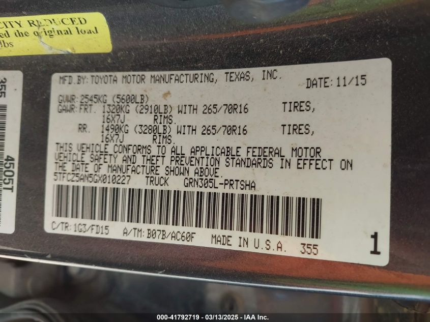 2016 TOYOTA TACOMA 2016 Gasoline, 3.5, Full drive, VIN - 5TFCZ5AN5GX****** from the USA