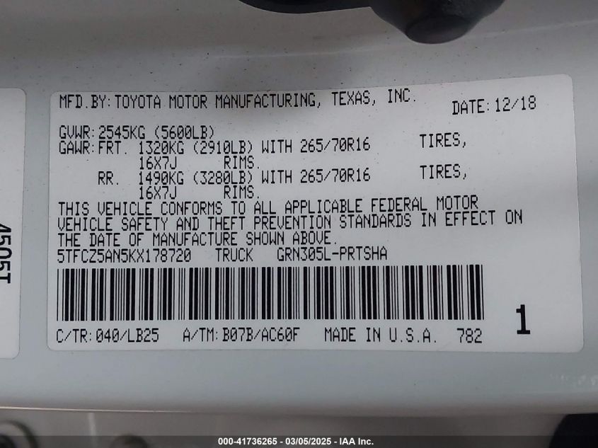 2019 TOYOTA TACOMA 2019 Gasoline, 3.5, Full drive, VIN - 5TFCZ5AN5KX****** from the USA