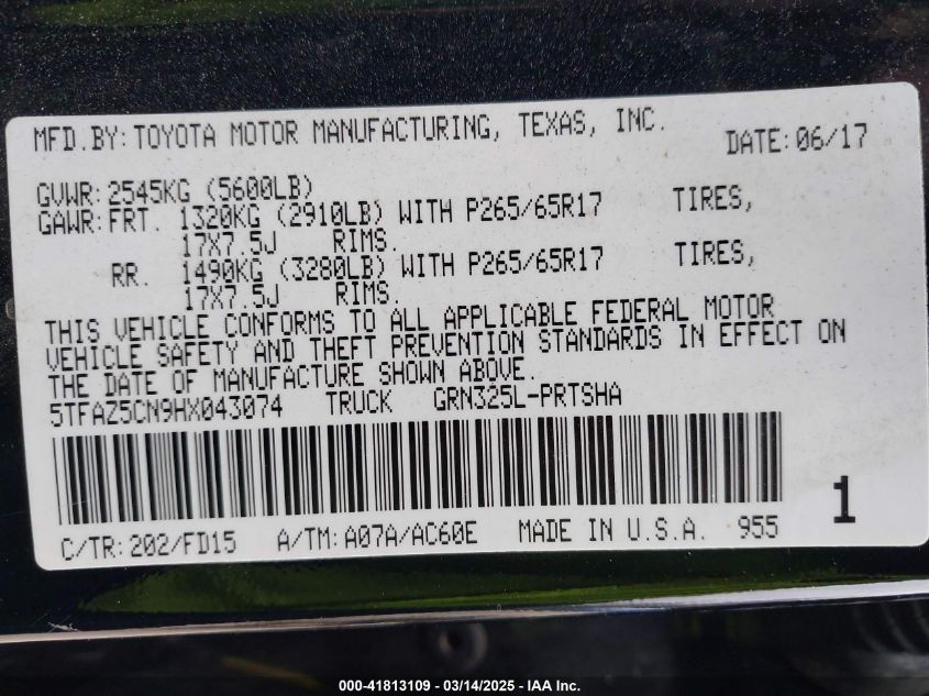 2017 TOYOTA TACOMA 2017 Gasoline, 3.5, Unknown, VIN - 5TFAZ5CN9HX****** from the USA