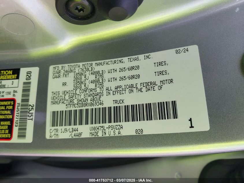 2024 TOYOTA TUNDRA 2024 Hybrid, 3.4, Full drive, VIN - 5TFMC5DB8RX****** from the USA