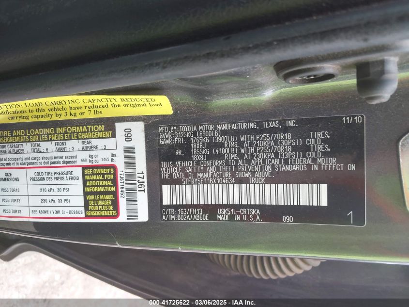 2011 TOYOTA TUNDRA 2011 Gasoline, 5.7, Unknown, VIN - 5TFRY5F11BX****** from the USA