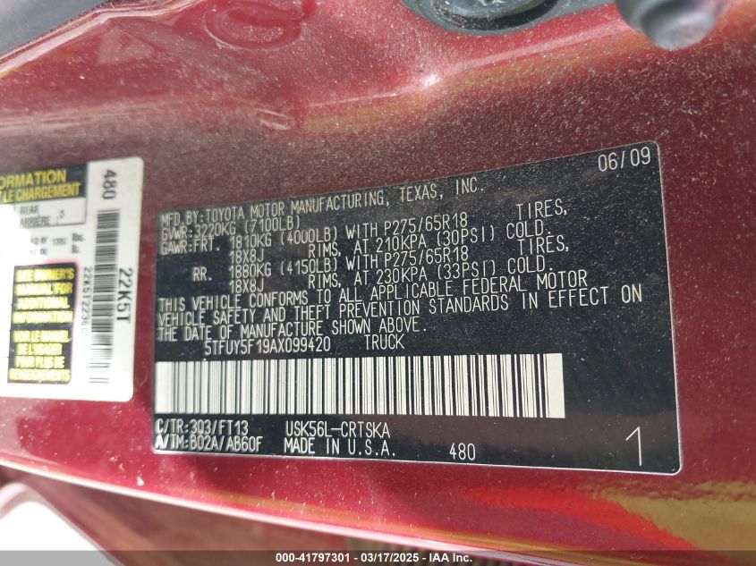 2010 TOYOTA TUNDRA 2010 Gasoline, 5.7, Full drive, VIN - 5TFUY5F19AX****** from the USA