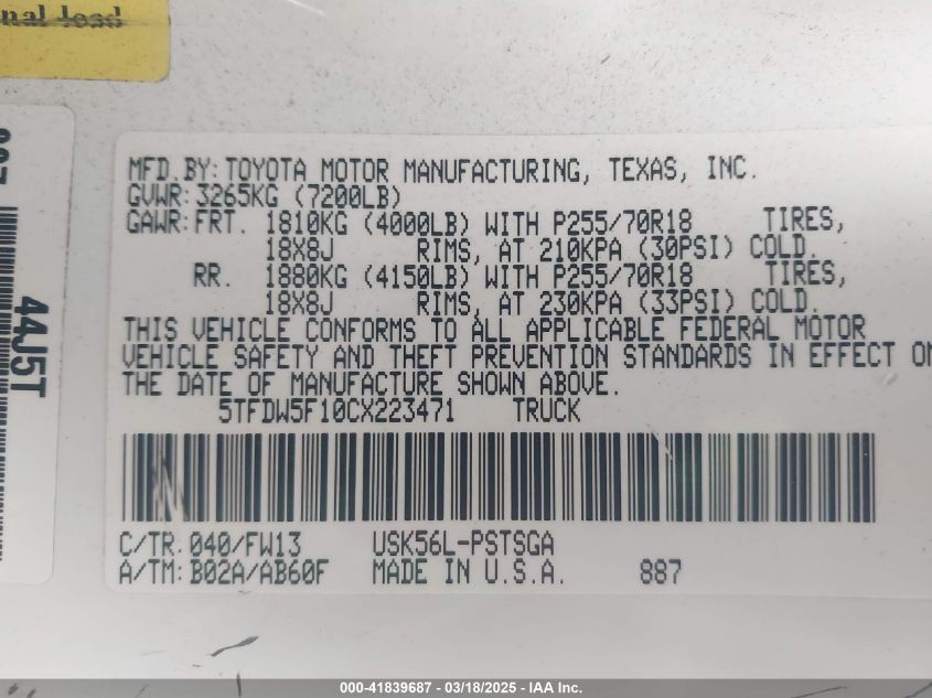 2012 TOYOTA TUNDRA 2012 Gasoline, 5.7, Full drive, VIN - 5TFDW5F10CX****** from the USA