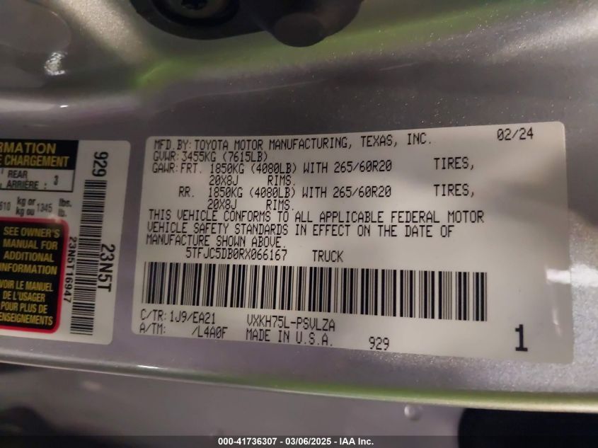 2024 TOYOTA TUNDRA 2024 Hybrid, 3.4, Full drive, VIN - 5TFJC5DB0RX****** from the USA
