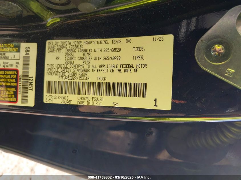 2024 TOYOTA TUNDRA 2024 Gasoline, 3.4, Full drive, VIN - 5TFJA5DB2RX****** from the USA