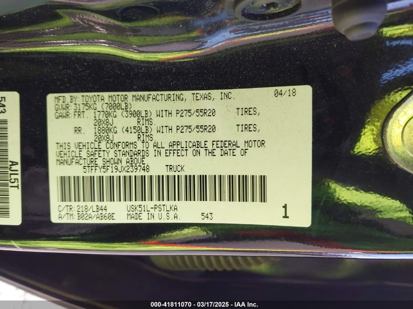 2018 TOYOTA TUNDRA 2018 Gasoline, 5.7, Unknown, VIN - 5TFFY5F19JX****** from the USA