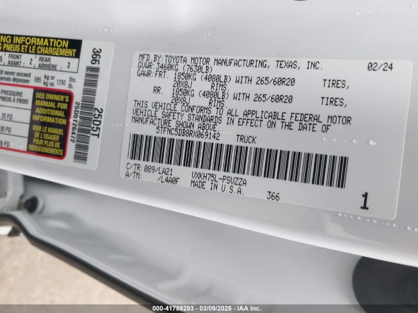 2024 TOYOTA TUNDRA 2024 Hybrid, 3.4, Full drive, VIN - 5TFNC5DB8RX****** from the USA