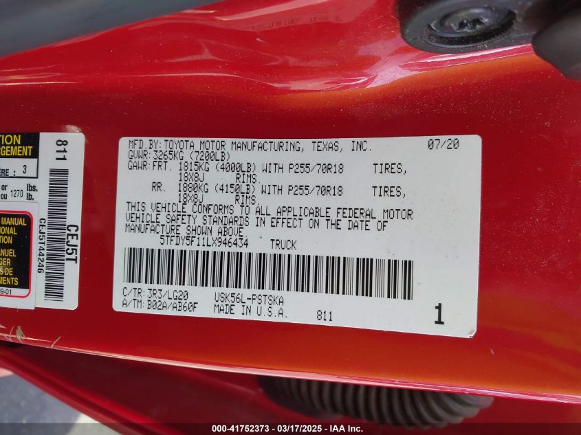 2020 TOYOTA TUNDRA 2020 Gasoline, 5.7, Full drive, VIN - 5TFDY5F11LX****** from the USA