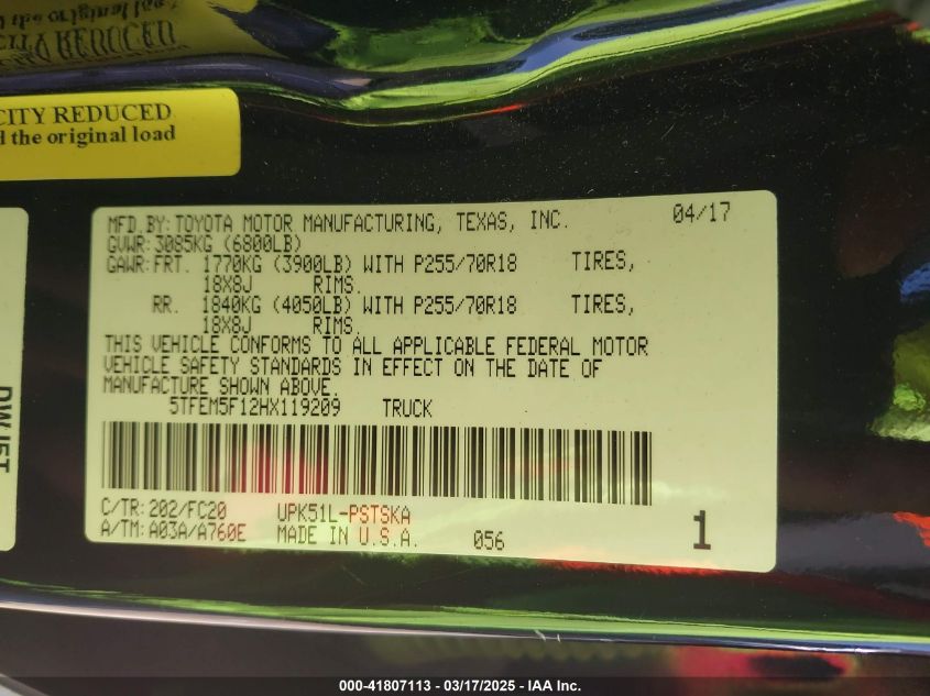 2017 TOYOTA TUNDRA 2017 Gasoline, 4.6, Unknown, VIN - 5TFEM5F12HX****** from the USA