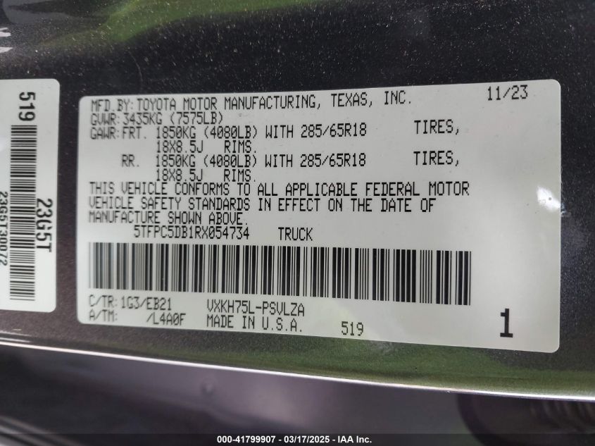 2024 TOYOTA TUNDRA 2024 Hybrid, 3.4, Full drive, VIN - 5TFPC5DB1RX****** from the USA
