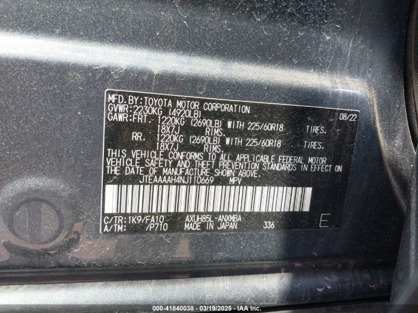 2022 TOYOTA VENZA 2022 Hybrid, 2.5, Full drive, VIN - JTEAAAAH4NJ****** from the USA