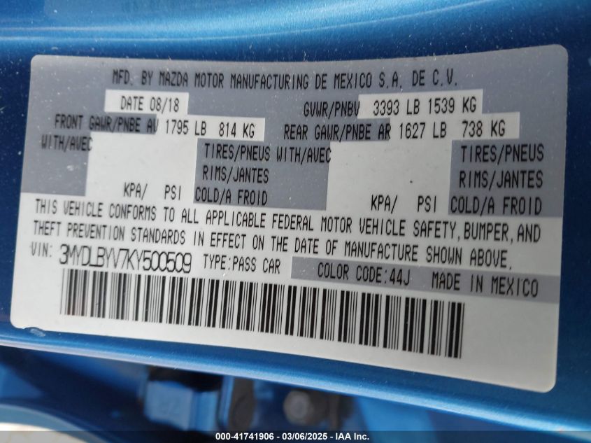 Color BlueCylinders 4Drive Front wheel driveVIN 3MYDLBYV7KY******State Run & Drive VerifiedDamage Front leftAuction date 2025-03-21 AutoRIA