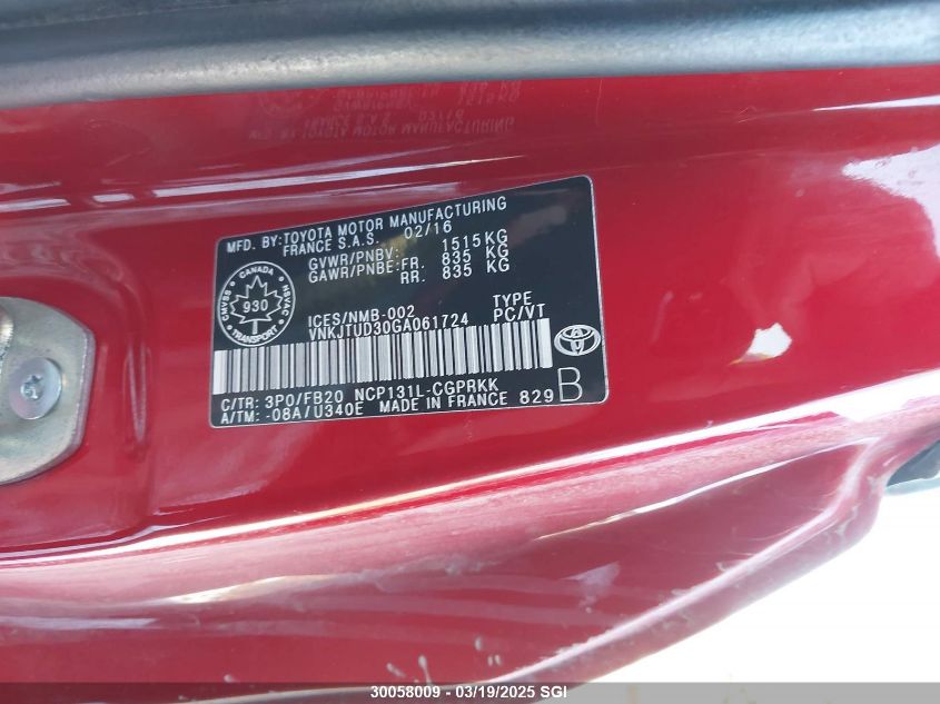 2016 TOYOTA YARIS 2016 Gasoline, , Unknown, VIN - VNKJTUD30GA****** from the USA