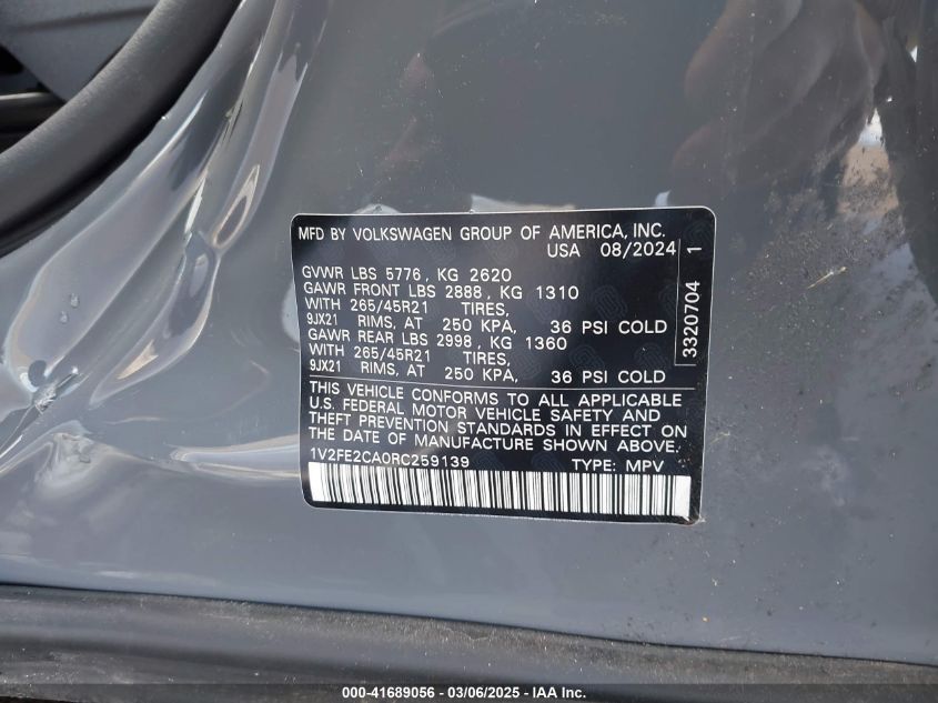 2024 VOLKSWAGEN ATLAS 2024 Gasoline, 2.0, Full drive, VIN - 1V2FE2CA0RC****** from the USA