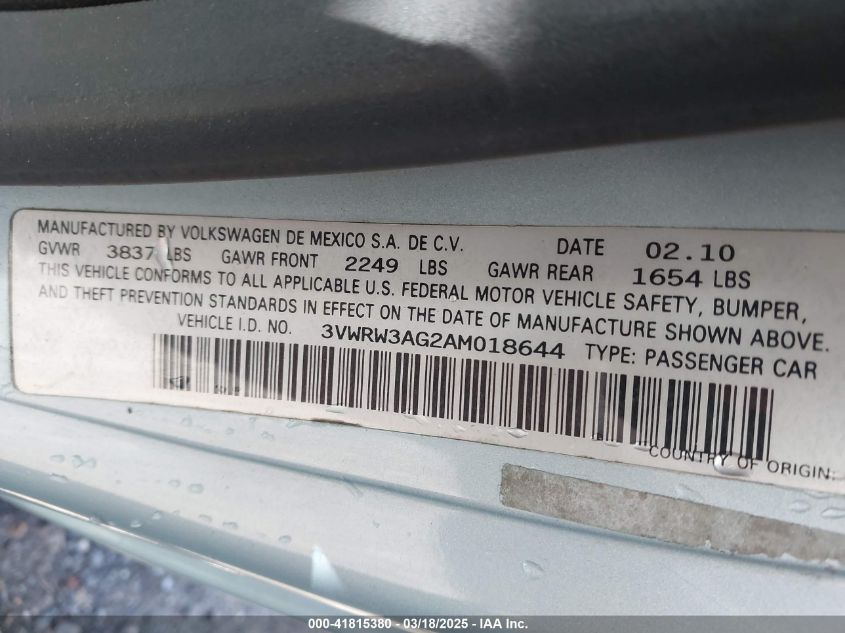 2010 VOLKSWAGEN BEETLE 2010 Gasoline, 2.5, Front wheel drive, VIN - 3VWRW3AG2AM****** from the USA