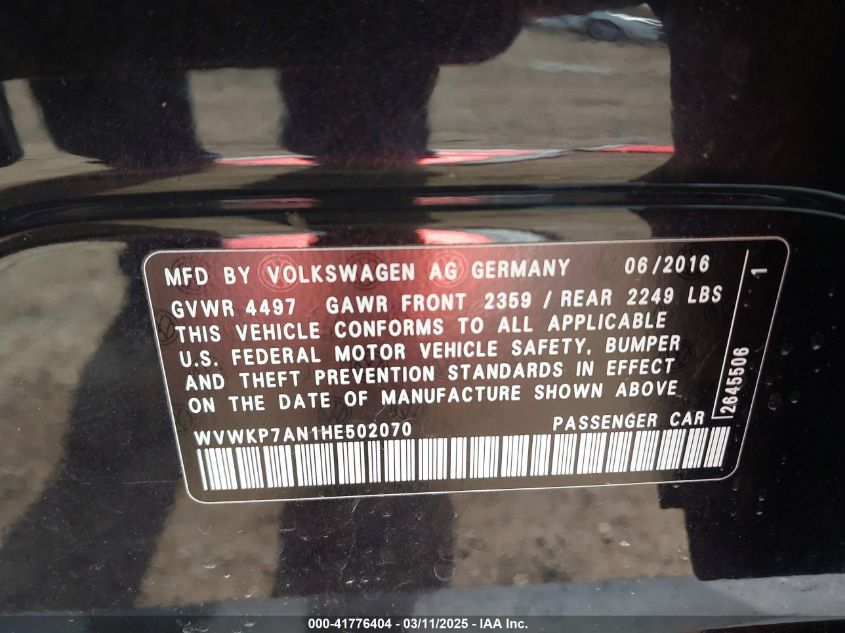 Color BlackCylinders 4Drive Front wheel driveVIN WVWKP7AN1HE******State Run & Drive VerifiedDamage Front or back