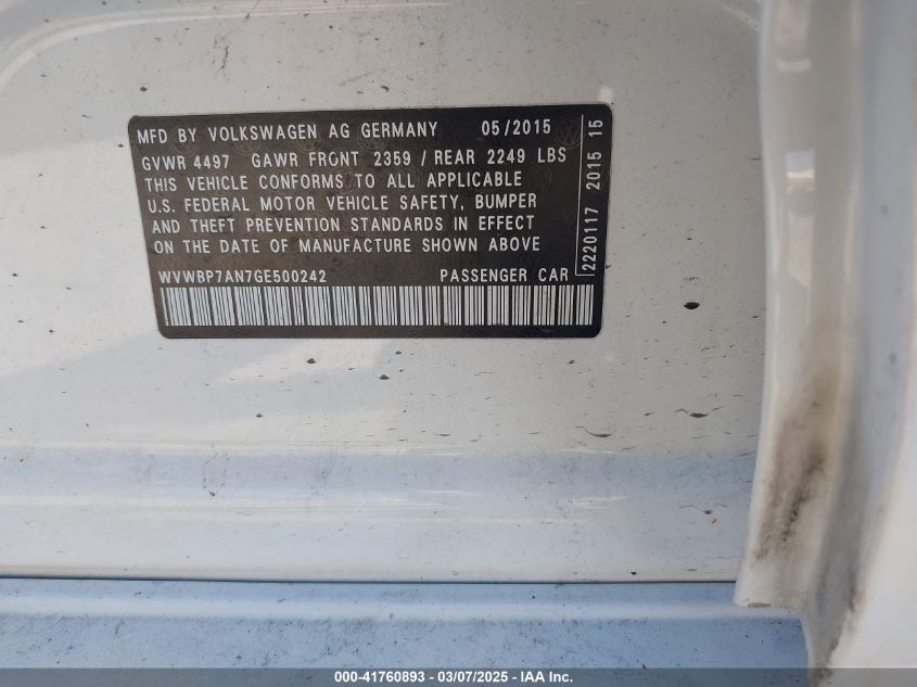 Color WhiteCylinders 4Drive Front wheel driveVIN WVWBP7AN7GE******State Run & Drive VerifiedDamage InsignificantAuction date 2025-03-24 AutoRIA