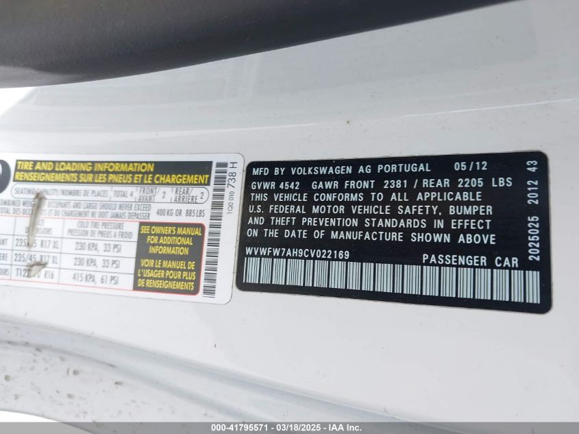 Color WhiteCylinders 4Drive Front wheel driveVIN WVWFW7AH9CV******State Run & Drive VerifiedDamage Front or back AutoRIA