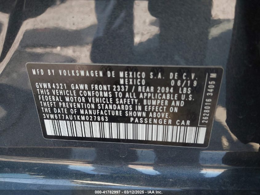 2019 VOLKSWAGEN GOLF GTI 2019 Gasoline, 2.0, Front wheel drive, VIN - 3VW6T7AU1KM****** from the USA