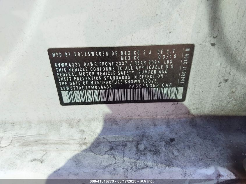 Color WhiteCylinders 4Drive Front wheel driveVIN 3VW6T7AU2KM******State Run & Drive VerifiedDamage Insignificant AutoRIA