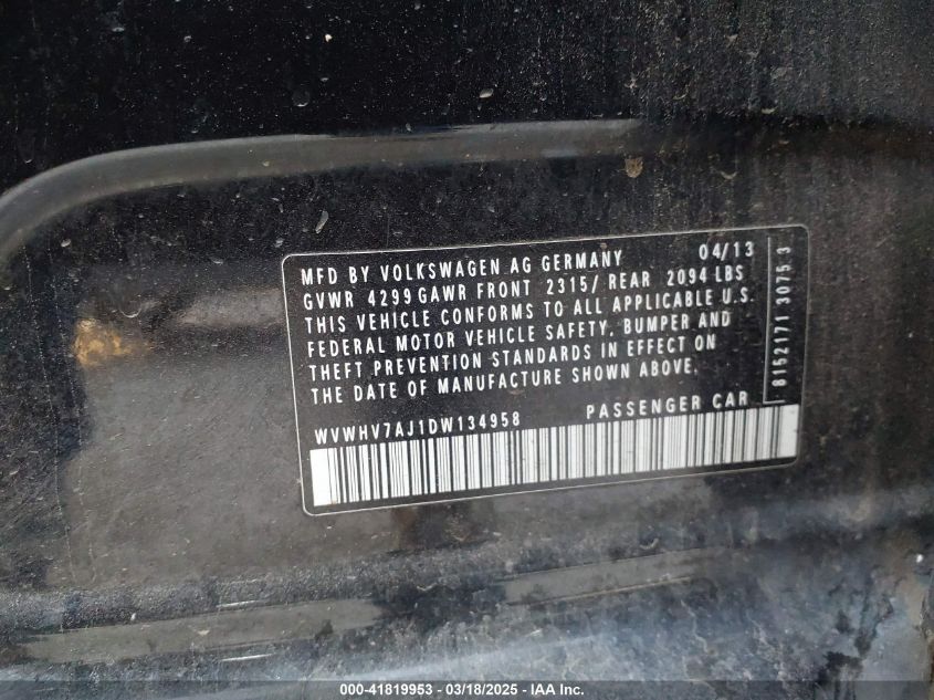 Color BlackCylinders 4Drive Front wheel driveVIN WVWHV7AJ1DW******State Run & Drive VerifiedDamage All over the carAuction date 2025-03-24 AutoRIA