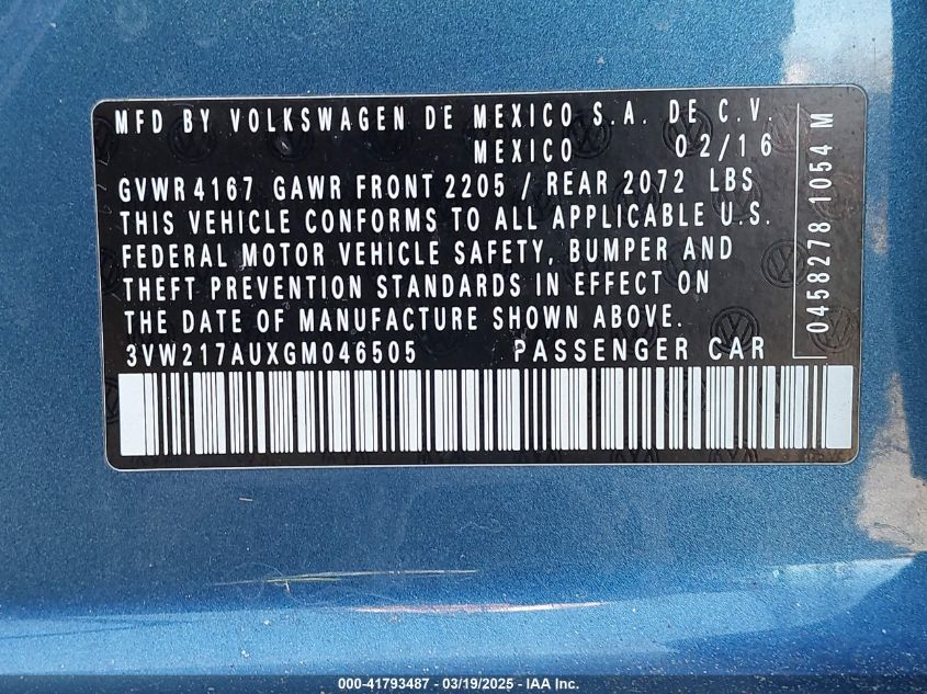 2016 VOLKSWAGEN GOLF 2016 Gasoline, 1.8, Front wheel drive, VIN - 3VW217AUXGM****** from the USA