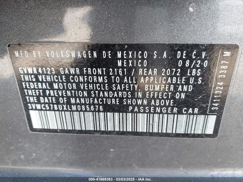 2020 VOLKSWAGEN JETTA 2020 Gasoline, 1.4, Front wheel drive, VIN - 3VWC57BUXLM****** from the USA