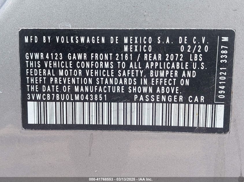 2020 VOLKSWAGEN JETTA 2020 Gasoline, 1.4, Front wheel drive, VIN - 3VWCB7BU0LM****** from the USA