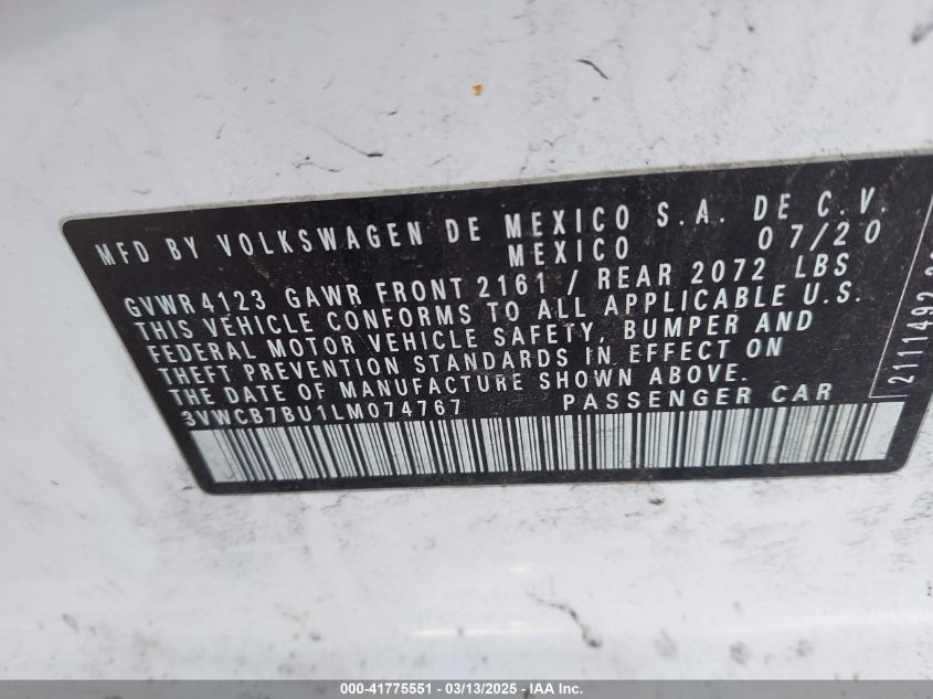 2020 VOLKSWAGEN JETTA 2020 Gasoline, 1.4, Front wheel drive, VIN - 3VWCB7BU1LM****** from the USA