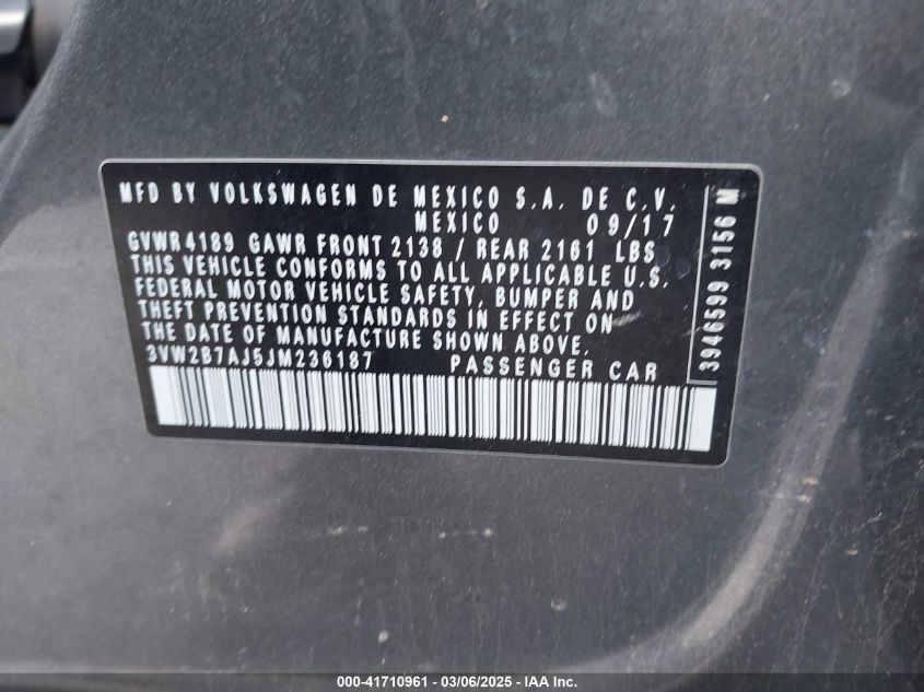 2018 VOLKSWAGEN JETTA 2018 Gasoline, 1.4, Front wheel drive, VIN - 3VW2B7AJ5JM****** from the USA