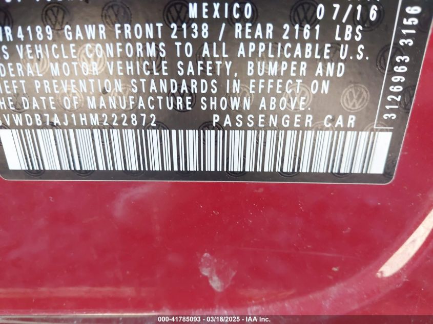 2017 VOLKSWAGEN JETTA 2017 Gasoline, 1.4, Front wheel drive, VIN - 3VWDB7AJ1HM****** from the USA