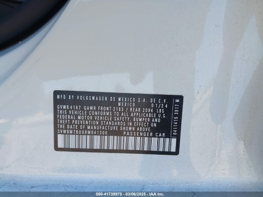 2024 VOLKSWAGEN JETTA 2024 Gasoline, 1.5, Front wheel drive, VIN - 3VWBM7BUXRM****** from the USA