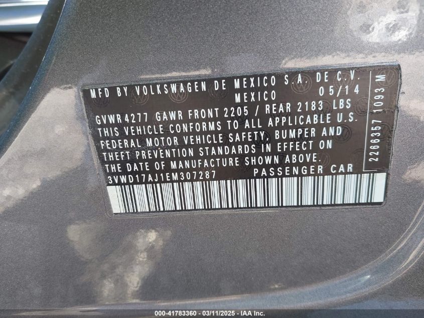 Color GrayCylinders 4Drive Front wheel driveVIN 3VWD17AJ1EM******State Run & Drive VerifiedDamage Left side AutoRIA