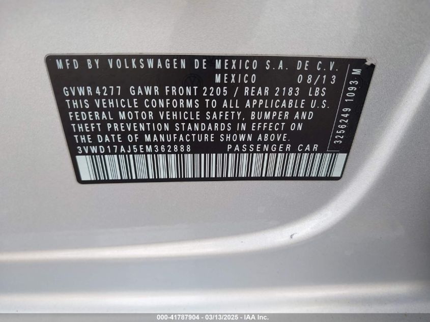 Color SilverCylinders 4Drive Front wheel driveVIN 3VWD17AJ5EM******State Run & Drive VerifiedDamage Front left AutoRIA