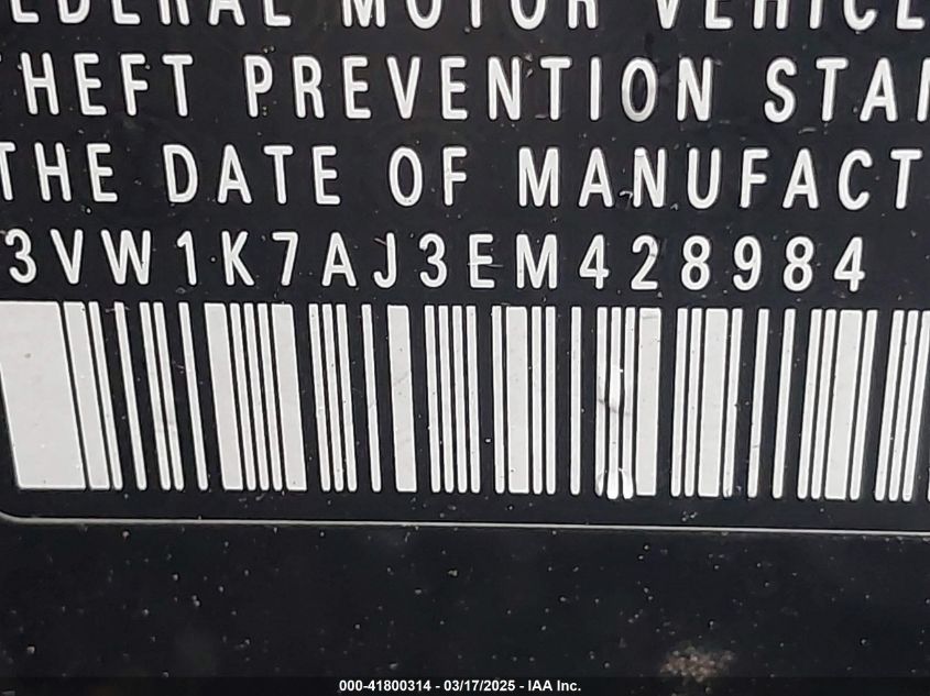 Color BlackCylinders 4Drive Front wheel driveVIN 3VW1K7AJ3EM******State Run & Drive VerifiedDamage Motor AutoRIA