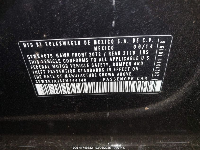 2014 VOLKSWAGEN JETTA 2014 Gasoline, 2.0, Front wheel drive, VIN - 3VW2K7AJ5EM****** from the USA