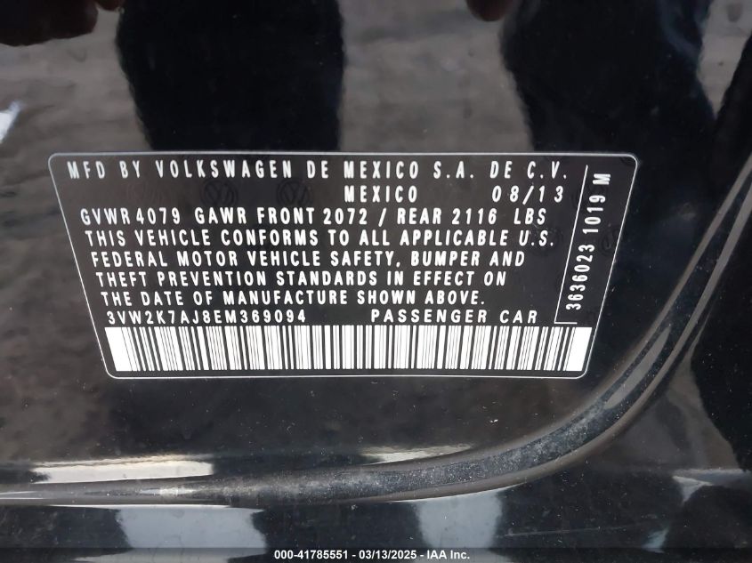 2014 VOLKSWAGEN JETTA 2014 Gasoline, 2.0, Front wheel drive, VIN - 3VW2K7AJ8EM****** from the USA