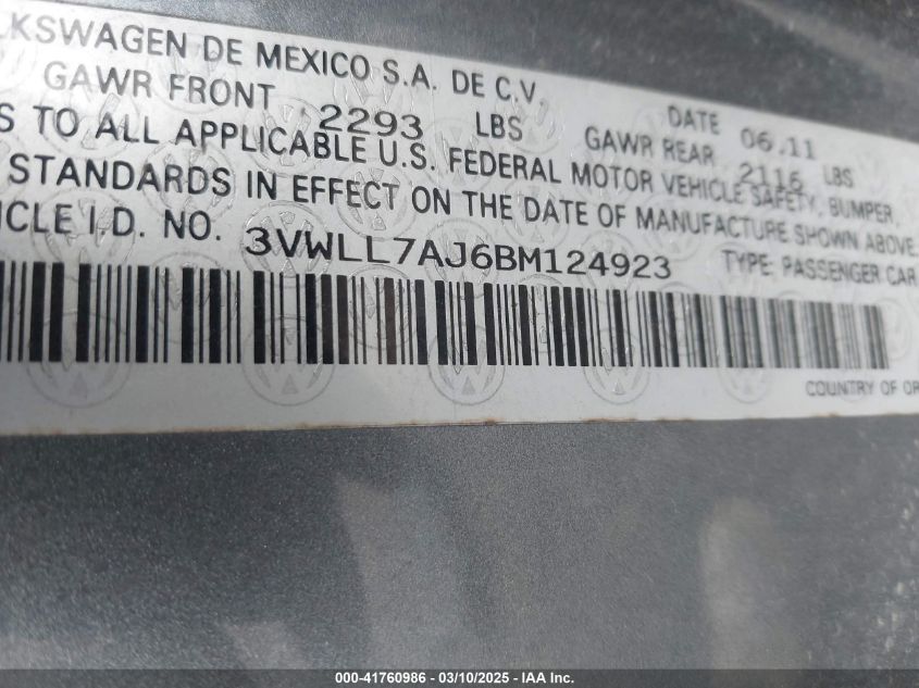 Color GrayCylinders 4Drive Front wheel driveVIN 3VWLL7AJ6BM******State Run & Drive VerifiedDamage Front or back AutoRIA