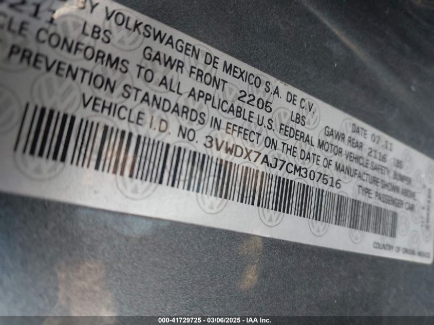 2012 VOLKSWAGEN JETTA 2012 Gasoline, 2.5, Front wheel drive, VIN - 3VWDX7AJ7CM****** from the USA