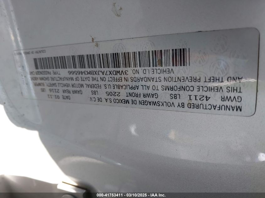 2011 VOLKSWAGEN JETTA 2011 Gasoline, 2.5, Front wheel drive, VIN - 3VWDX7AJXBM****** from the USA