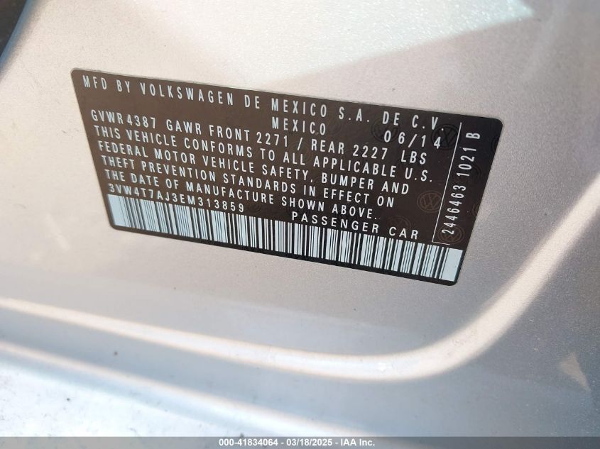 2014 VOLKSWAGEN JETTA 2014 Gasoline, 2.0, Front wheel drive, VIN - 3VW4T7AJ3EM****** from the USA