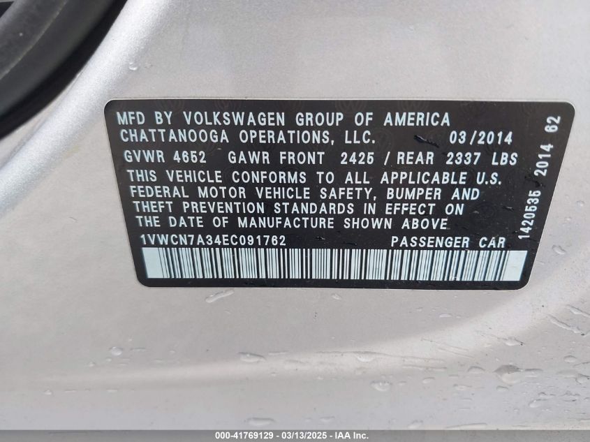2014 VOLKSWAGEN PASSAT 2014 Diesel, 2.0, Front wheel drive, VIN - 1VWCN7A34EC****** from the USA