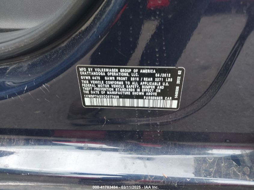 2012 VOLKSWAGEN PASSAT 2012 Gasoline, 2.5, Front wheel drive, VIN - 1VWBP7A3XCC****** from the USA