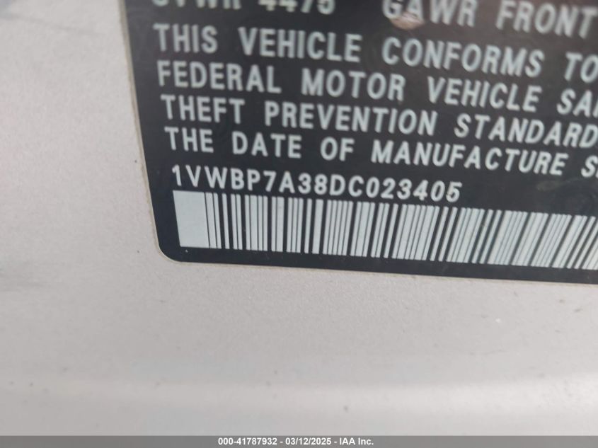 Color SilverCylinders 5Drive Front wheel driveVIN 1VWBP7A38DC******State Run & Drive VerifiedDamage InsignificantAuction date 2025-03-20 AutoRIA