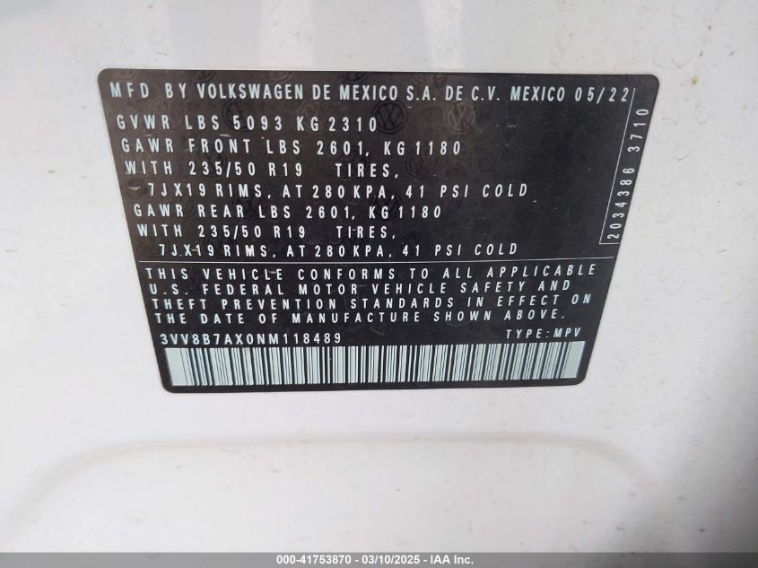 Color WhiteCylinders 4Drive Full driveVIN 3VV8B7AX0NM******State Run & Drive VerifiedDamage Front or back AutoRIA