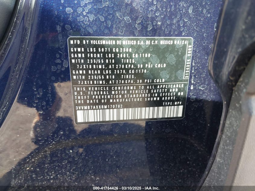 2024 VOLKSWAGEN TIGUAN 2024 Gasoline, 2.0, Full drive, VIN - 3VVMB7AXXRM****** from the USA