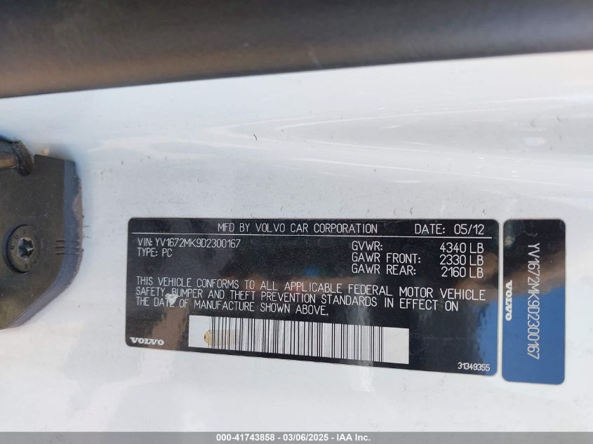 Color WhiteCylinders 5Drive Front wheel driveVIN YV1672MK9D2******State Run & Drive VerifiedDamage InsignificantAuction date 2025-03-25