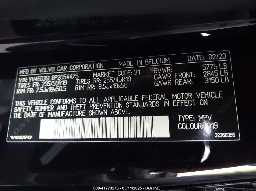 2023 VOLVO C40 RECHARGE 2023 Electric, U, Full drive, VIN - YV4ED3GL8P2****** from the USA